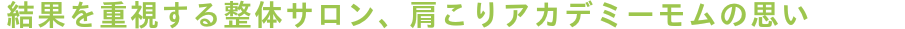 そのようなお客様のご期待に応えるため、常に技術、知識の習得につとめています。ぜひ一度結果重視の整体サロン、肩こりアカデミーモムの施術をお試しください。